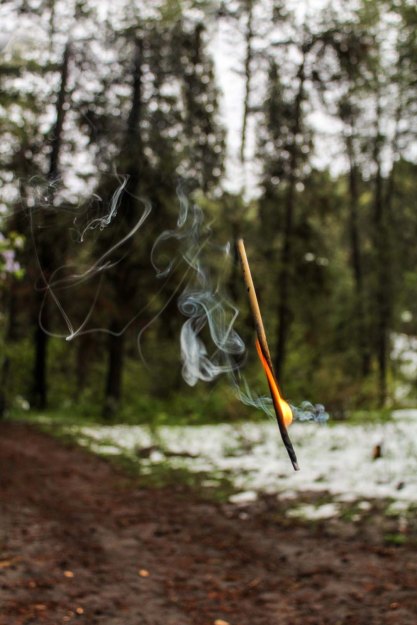 For this image I took a picture of the background and then had my friend hold a burning roasting stick, I was able to crop out some of the stick in Adobe Photoshop to making it look like the stick was floating in mid air.